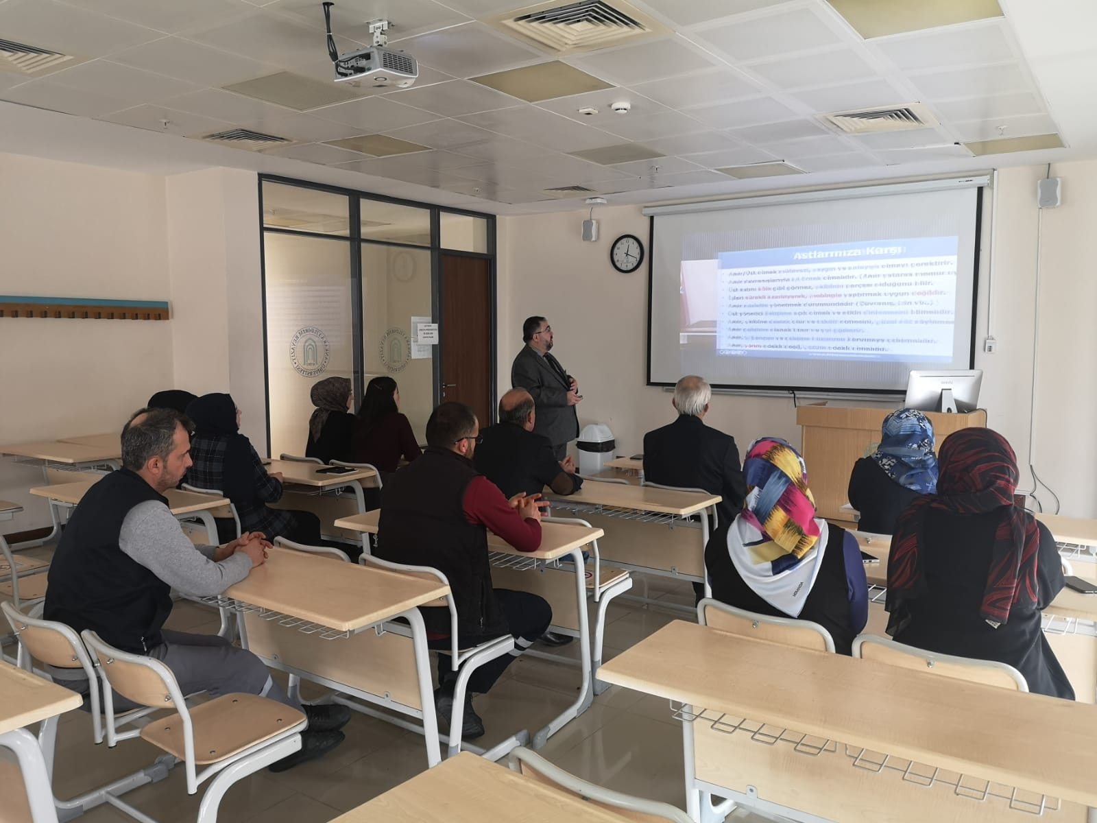 10.01.2025 tarihinde Fakülte Sekteretimiz Süleyman ÇAKMAK tarafından AYBÜ İlahiyat Fakültemiz personeline, iş yerinde dikkat edilecek hususlar, iletişim kuralları, puan düşüren davranışlar ve protokol kuralları eğitimi verildi..