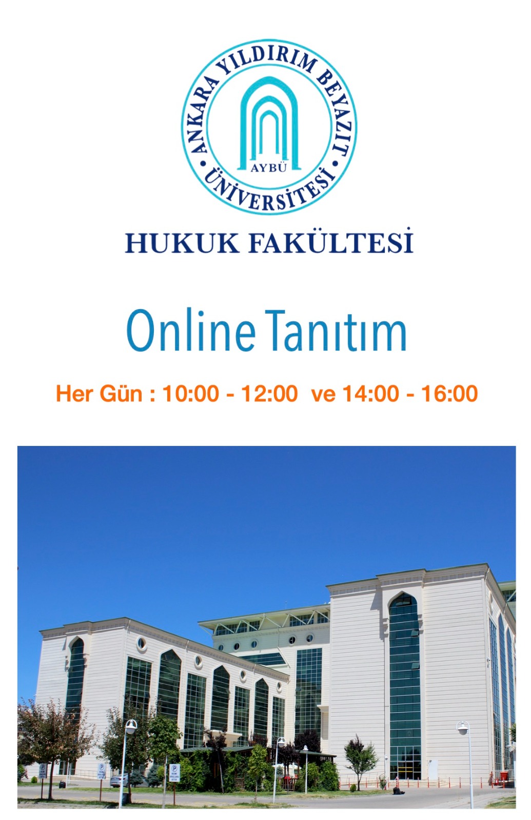 Ankara Yıldırım Beyazıt Üniversitesi Hukuk Fakültesi tanıtım günlerine dijital platformlardan da devam ediyor. 9 Ağustos 2021-19 Ağustos 2021 tarihleri arasında Fakültemiz ile ilgili sorularınızı akademik personelimize sorarak öğrenebilirsiniz.
