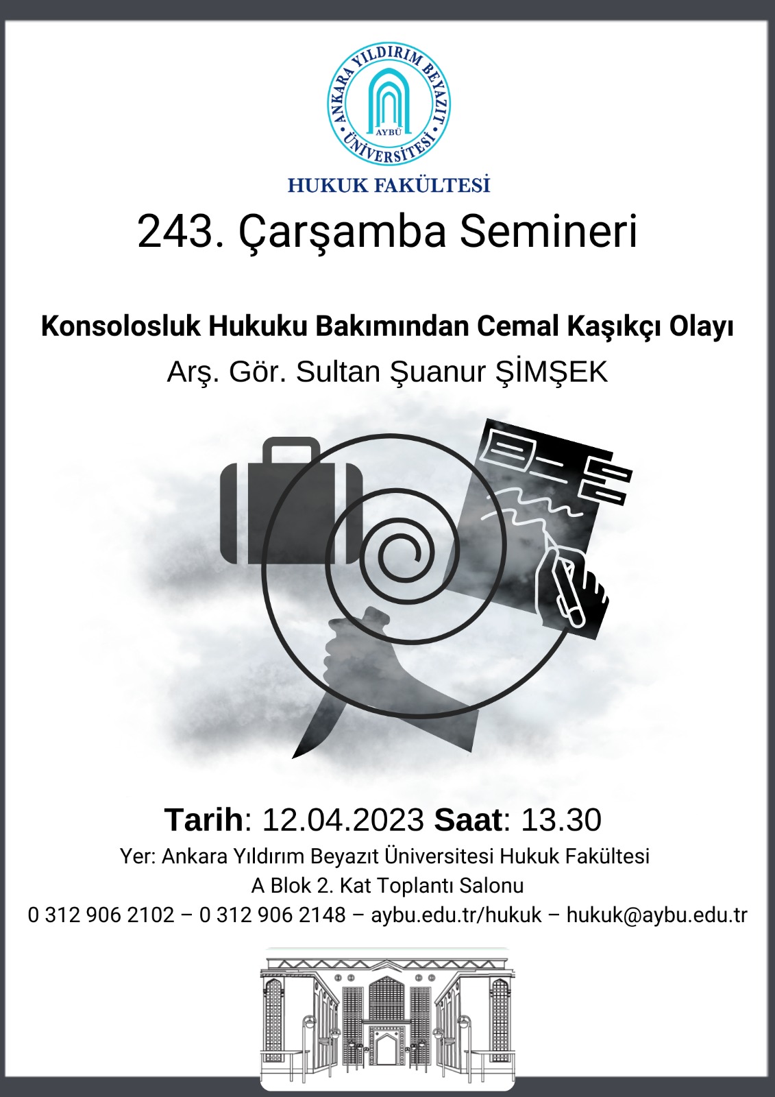 243. Çarşamba  Semineri kapsamında; 2 Ekim 2018 tarihinde yaşanan Cemal Kaşıkçı Olayı, konsolosluk hukuku bakımından değerlendirilecektir. Bu amaçla, öncelikle Cemal Kaşıkçı Olayını hazırlayan süreç ve sonrası kısaca izah edilecektir. Daha sonra söz konusu olay, konsolosluk hukuku konusunda temel metin olan 1963 Konsolosluk İlişkileri Hakkında Viyana Sözleşmesi’nde ele alınan; bina ve araç dokunulmazlığı, kişi dokunulmazlığı ve yargı bağışıklığı düzenlemeler doğrultusunda değerlendirilerek kamuoyunda da tartışılmış soruların cevapları aranacaktır.