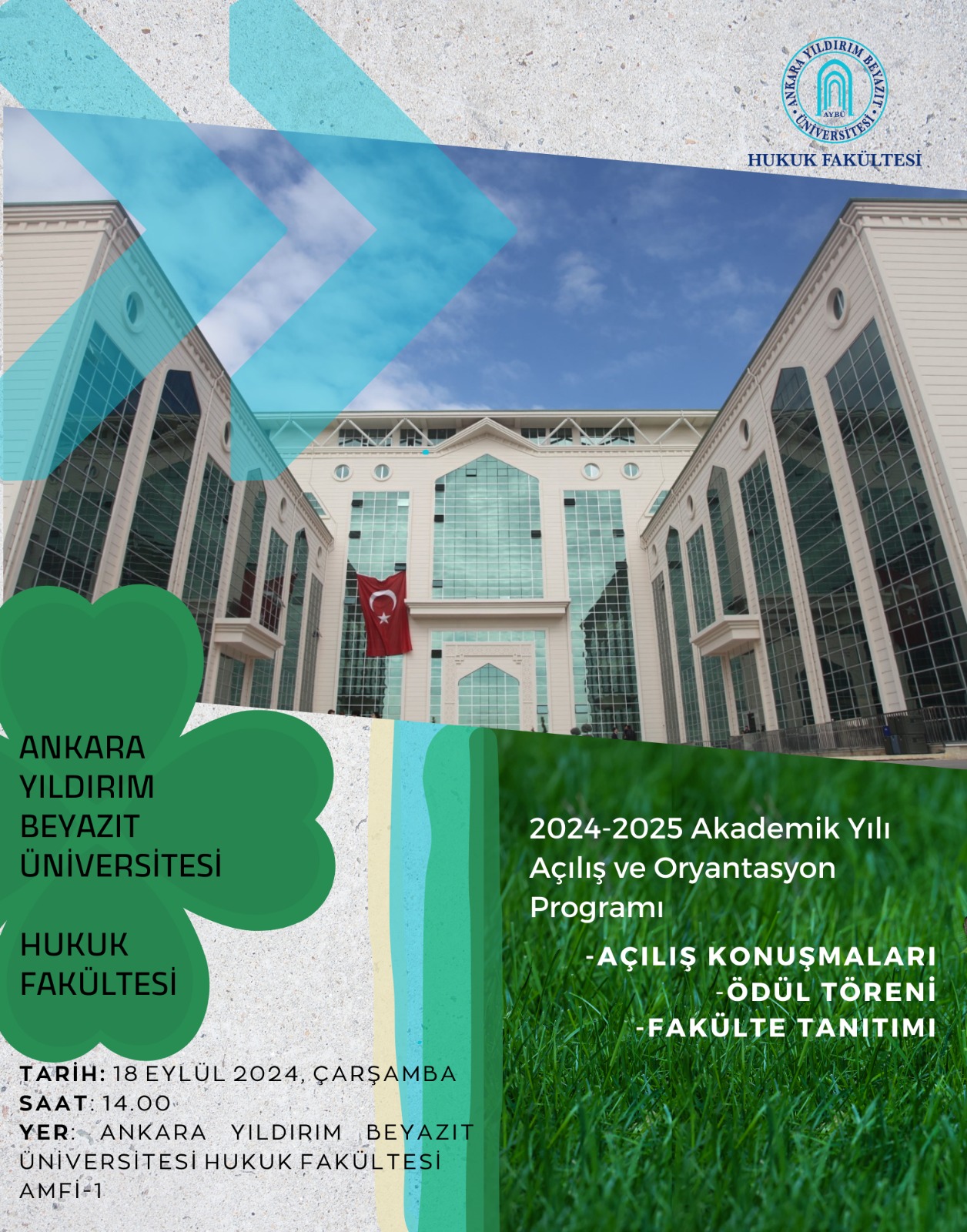 Hukuk Fakültesi 1. Sınıflar için 18 Eylül Çarşamba Günü saat 14.00’da Amfi I’de Oryantasyon programı gerçekleştirilecektir.