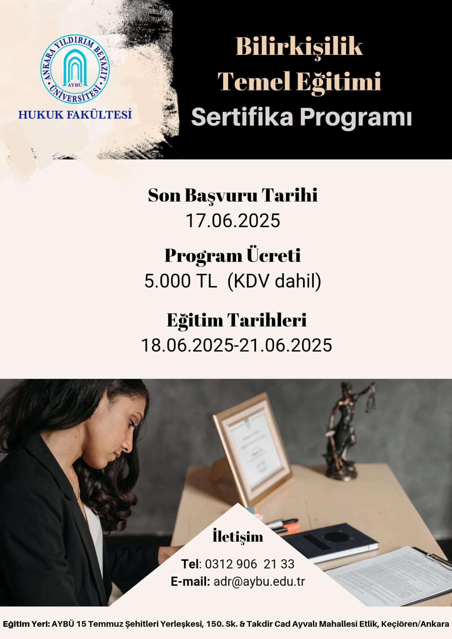 18-21 Haziran 2025 tarihleri arasında, Bilirkişilik Temel Eğitim Programı açılacaktır. 6754 sayılı Bilirkişilik Kanunu’nun 10 maddesi ve Bilirkişilik Yönetmeliği’nin 38. maddeleri gereğince, eğitime mesleklerinde en az beş yıl fiilen çalışmış kişiler katılabilirler.