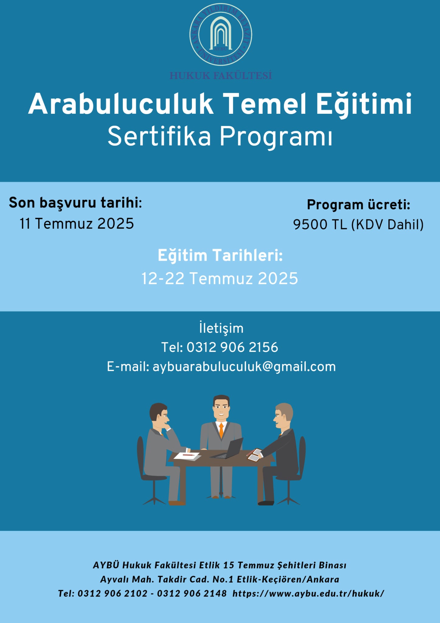 12-22 temmuz 2025 tarihleri arasında yüz yüze olmak üzere Arabuluculuk Temel Eğitimi Programı düzenlenecektir.