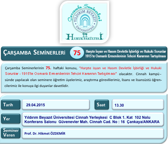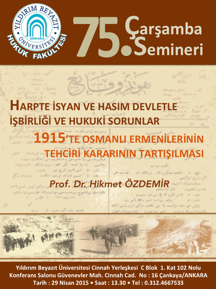 YBÜ Hukuk Fakültesi Çarşamba Semineri 75-Harpte İsyan ve Hasım Devletle İşbirliği ve Hukuki Sorunlar - 1915’te Osmanlı Ermenilerinin Tehciri Kararının Tartışılması