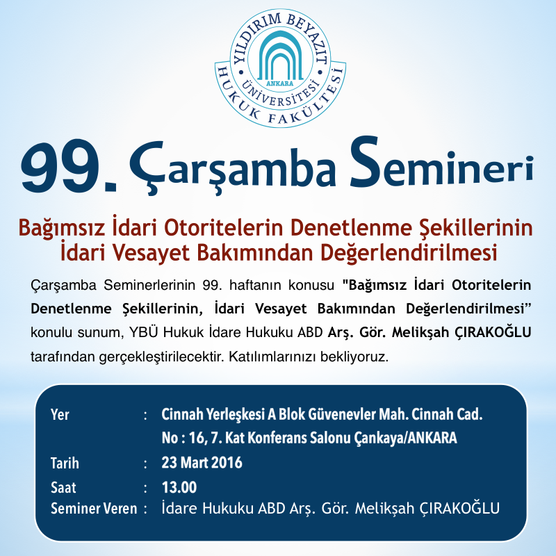 YBÜ Hukuk Fakültesi Çarşamba Semineri 99–Bağımsız İdari Otoritelerin Denetlenme Şekillerinin, İdari Vesayet Bakımından Değerlendirilmesi