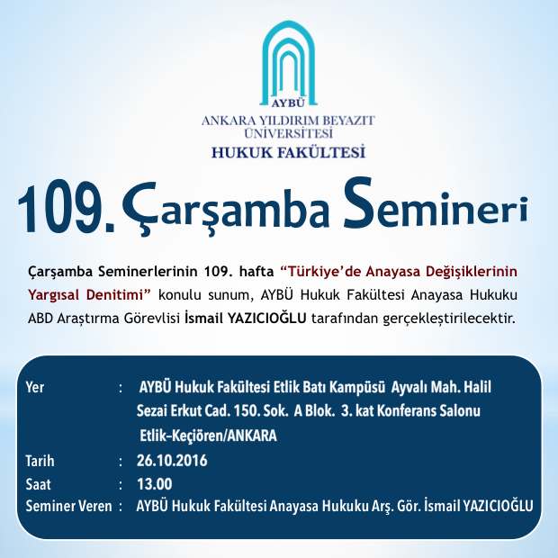 AYBÜ Hukuk Fakültesi Çarşamba Semineri 109–Türkiye'de Anayasal Değişikliklerinin Yargısal Denetimi