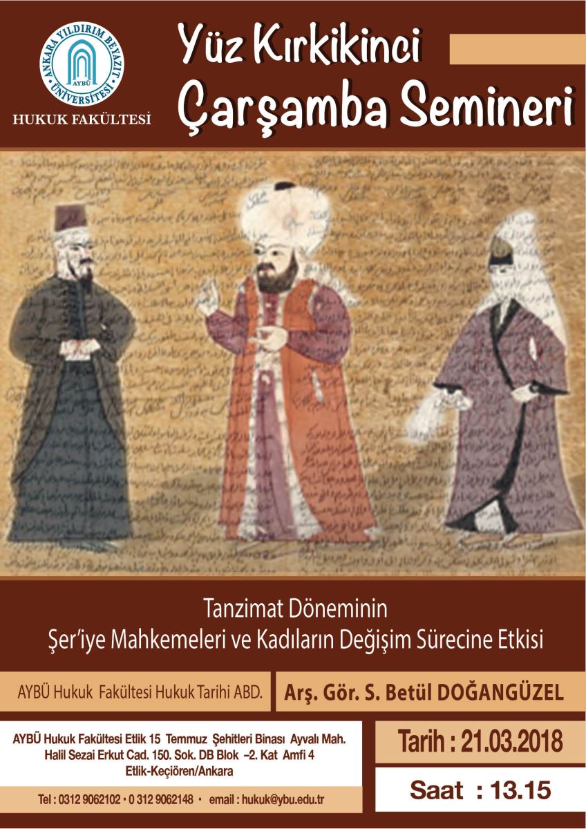 AYBÜ Hukuk Fakültesi Çarşamba Semineri 142–Tanzimat Döneminin Şeriye Mahkemeleri ve Kadıların Değişim Sürecine Etkisi