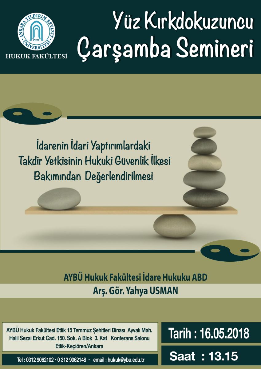 AYBÜ Hukuk Fakültesi Çarşamba Semineri 149 – İdarenin İdari Yaptırımlardaki Takdir Yetkisinin Hukuki Güvenlik İlkesi Bakımından Değerlendirilmesi