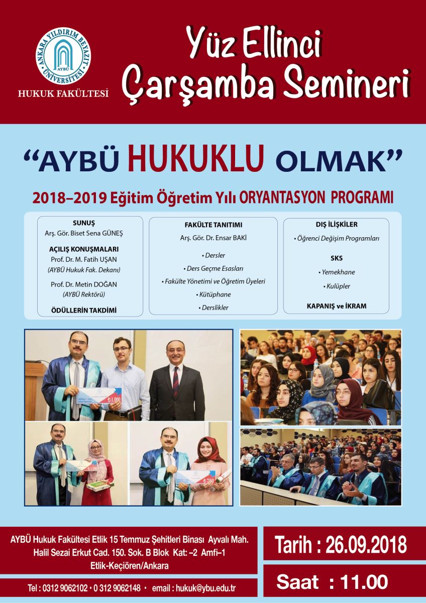 AYBÜ Hukuk Fakültesi 150. Çarşamba Semineri – 2018–2019 Eğitim Öğretim Yılı AYBÜ Hukuk Fakültesi Oryantasyon Programı