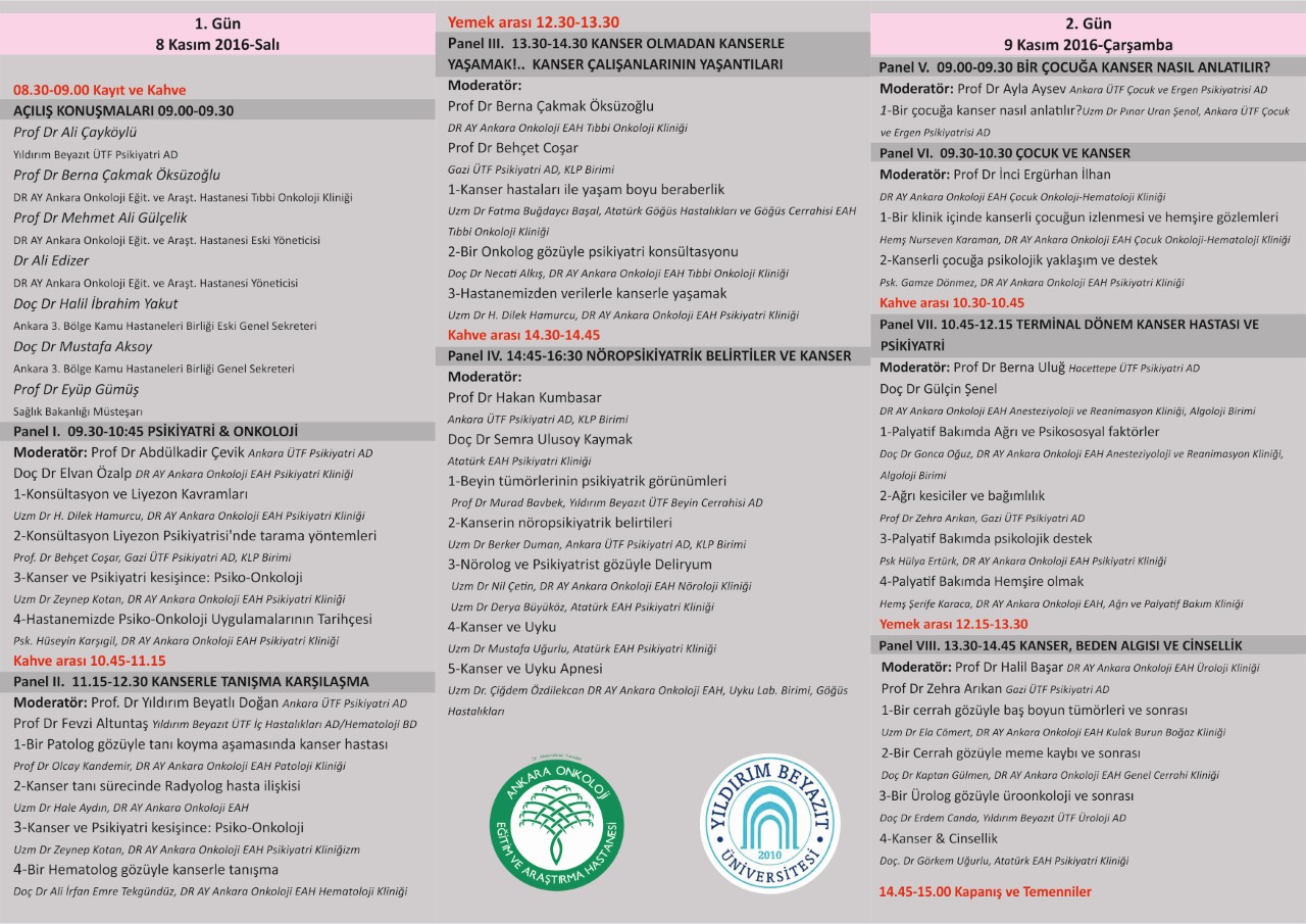 Program 08-09 Kasım 2016 tarihlerinde Ankara Onkoloji Eğitim ve Araştırma Hastanesi Korkut Akoğuz Konferans Salonunda yapılacaktır.