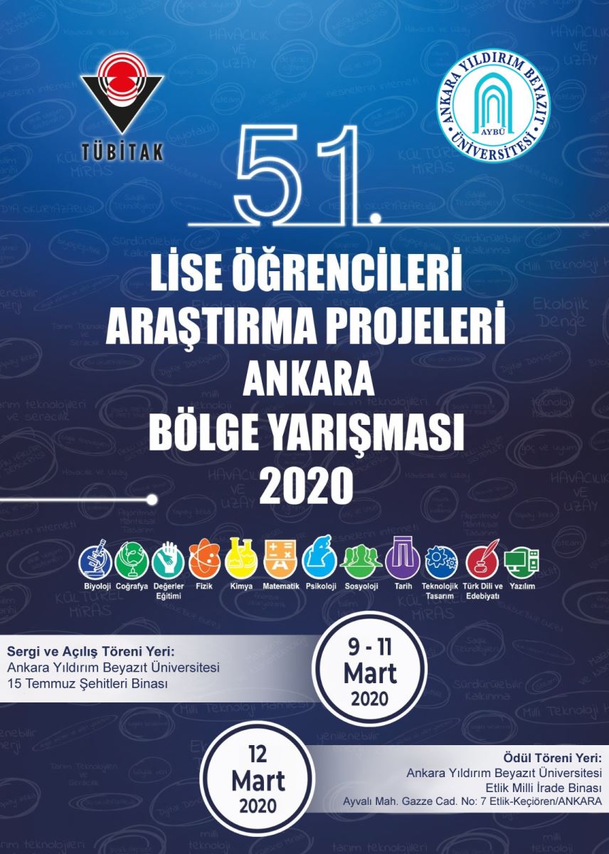 Üniversitemiz koordinatörlüğünde TÜBİTAK Bilim İnsan ve Destek Programları tarafından düzenlenen 51. Lise Öğrencileri Araştırma Projeleri Ankara Bölge Sergi açılışı ve ödül töreni gerçekleştirilecektir.