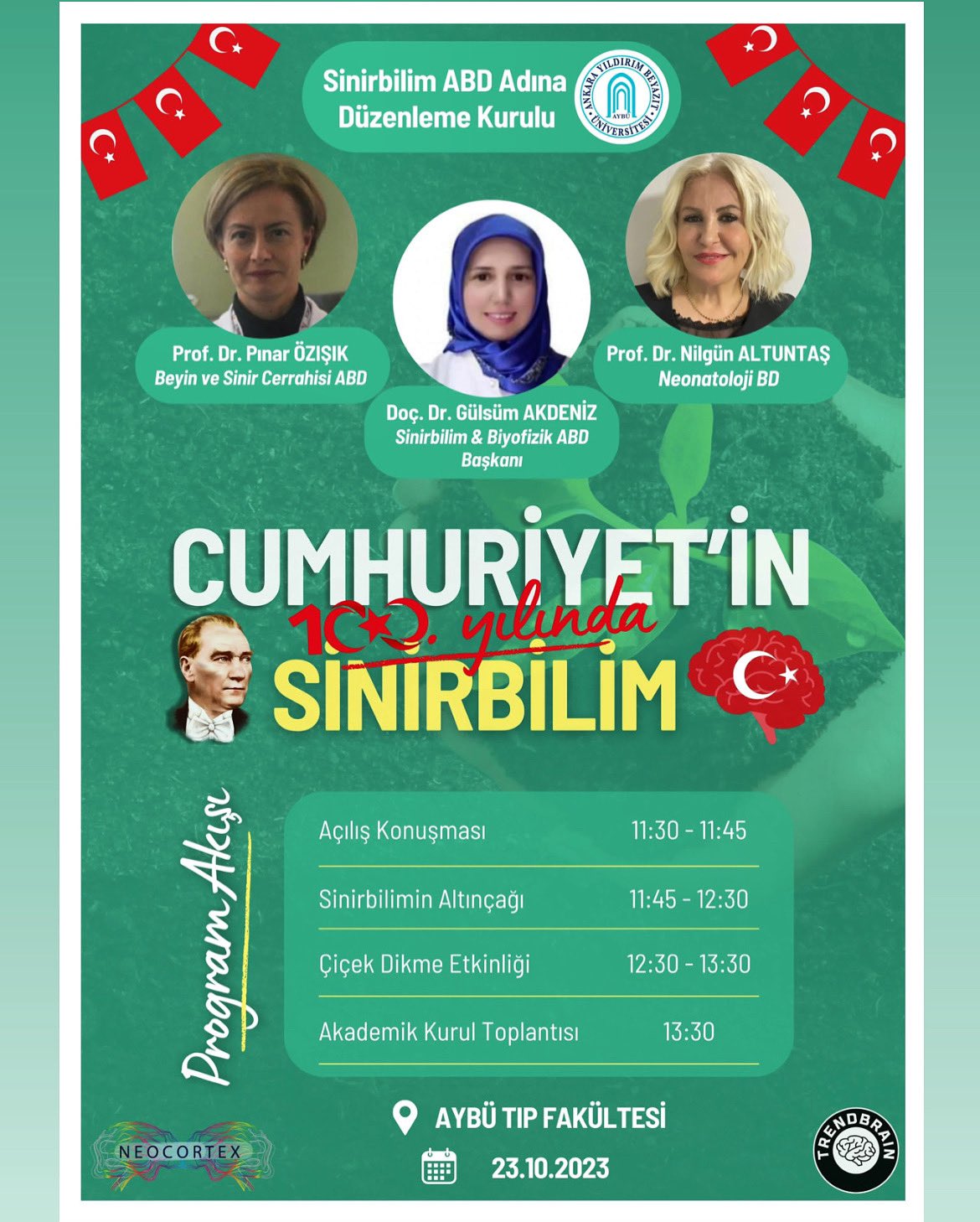 Bu hafta Klasik Pazartesi Sinirbilim Seminerinde " Cumhuriyetimizin 100. Yılında Sinirbilim "  ve ardından izimiz yıllar sonrada bu topraklarda kalsın diye AYBÜ Tıp Fakültesi bahçesine çiçek dikimi etkinliği yapılacaktır.
