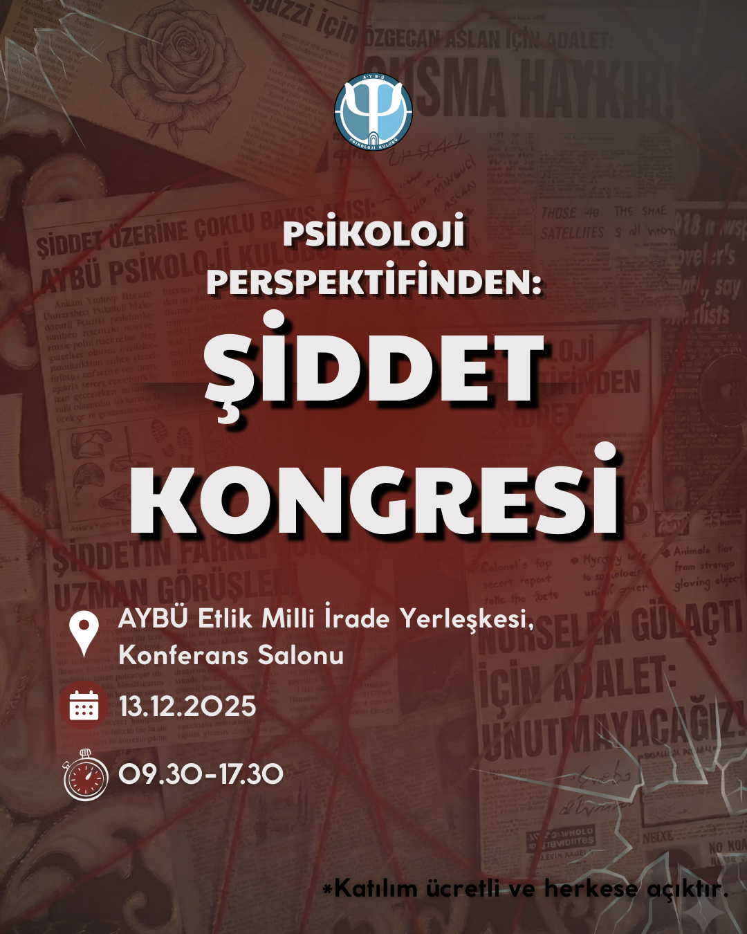 Ankara Yıldırım Beyazıt Üniversitesi Psikoloji Kulübünün düzenleyeceği "Psikoloji Perspektifinden Şiddet Kongresi"