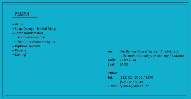 Üniversitemiz Lisansüstü Mezuniyet Töreni 23 Eylül 2014 Salı günü saat 14:00 de İller Bankası Sosyal Tesislerinde gerçekleştirilecektir.