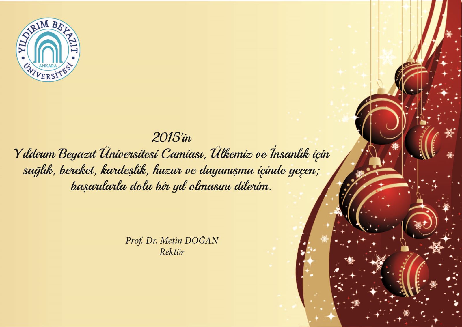 Rektörümüz Prof. Dr. Sayın Metin DOĞAN' ın Yılbaşı Mesajı