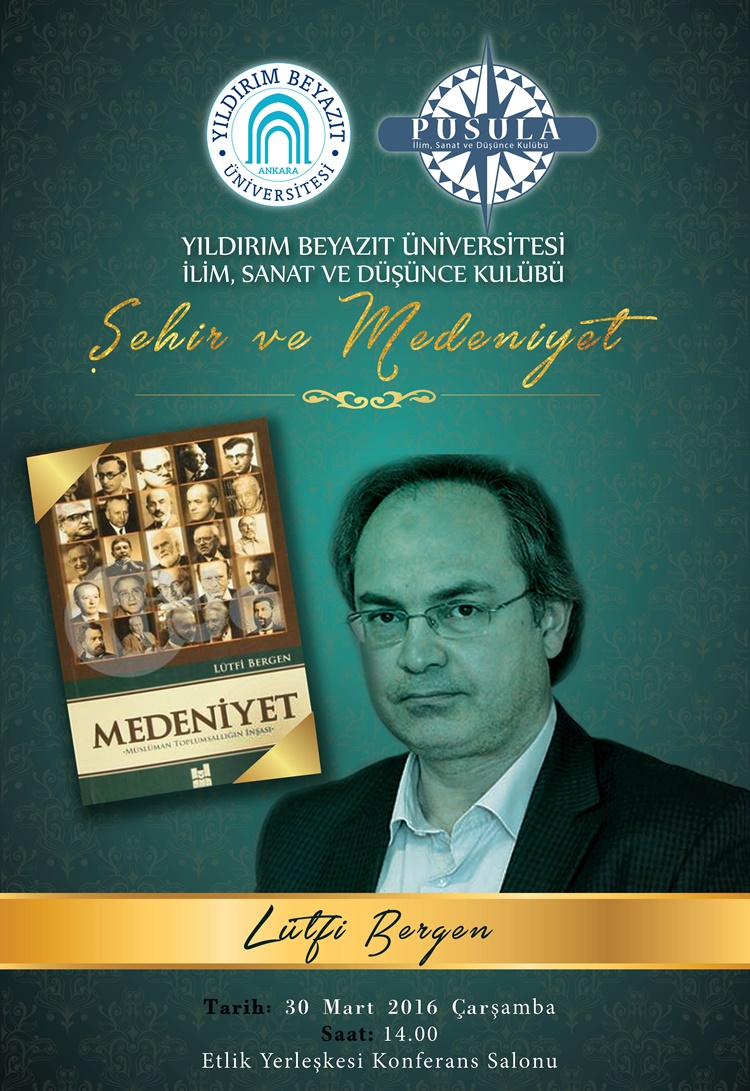 Üniversitemiz İlim, Sanat ve Düşünce Öğrenci Kulübü tarafından organize edilen Lütfi BERGEN'in konuşmacı olarak katılacağı "Şehir ve Medeniyet" paneli 30 Mart 2016 Çarşamba günü saat 14:00 Etlik Yerleşkemizde gerçekleştirilecektir.