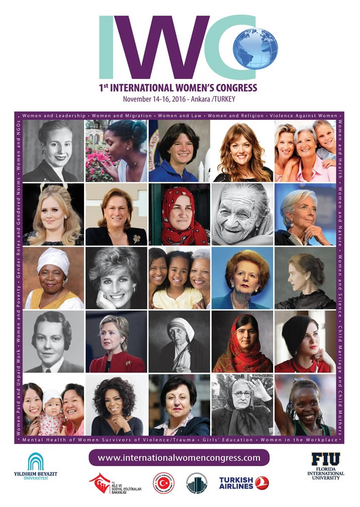 Üniversitemiz, Florida International University ve Aile ve Sosyal Politikalar Bakanlığı'nın işbirliği ile Başbakanlık Tanıtım Fonu, Türk Hava Yolları ve Altındağ Belediyesi'nin katkılarıyla 14-16 Kasım 2016 tarihinde Ankara Bilkent Oteli Kongre Merkezinde I. Uluslararası Kadın Kongresi gerçekleştirilecektir.