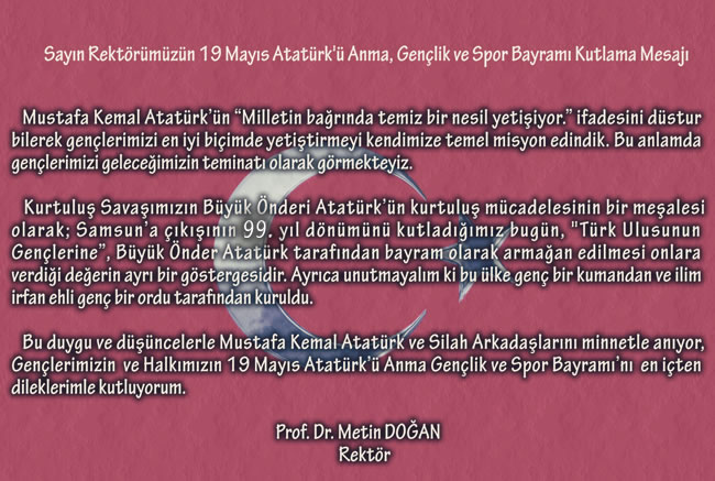 Sn. Rektörümüzün 19 Mayıs Atatürk’ü Anma, Gençlik ve Spor Bayramı Kutlama Mesajı
