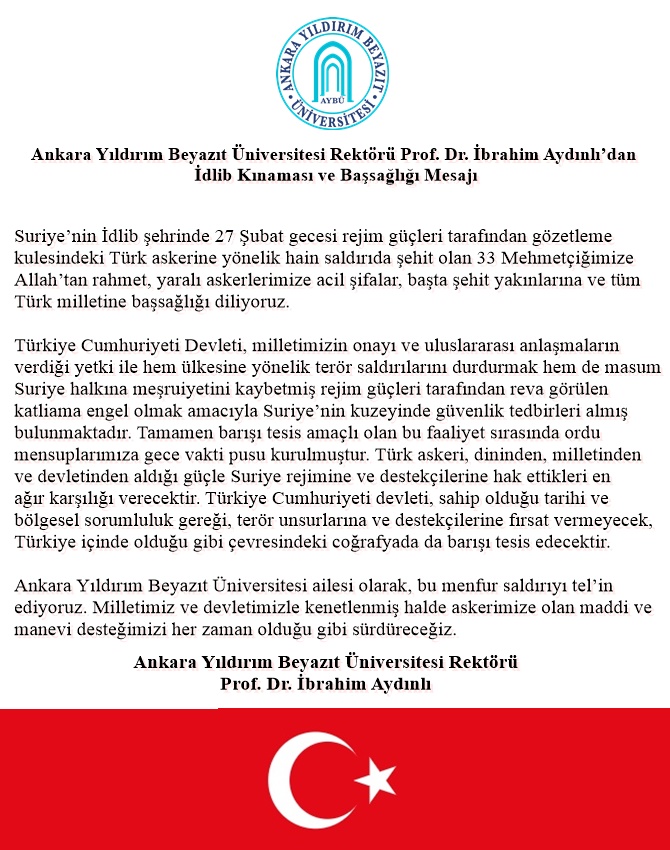 Üniversitemiz Rektörü Prof. Dr. İbrahim Aydınlı’dan İdlib Kınaması ve Başsağlığı Mesajı