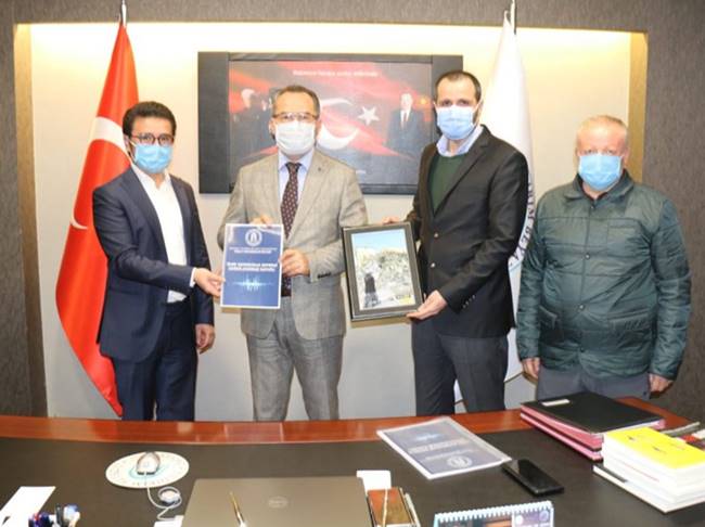 Deprem bölgesinde incelemelerini yapan ve sonrasında raporu hazırlayan Öğretim Üyelerimiz hazırladıkları raporu AYBÜ Rektörü Prof. Dr. İbrahim Aydınlı’ya takdim etti.