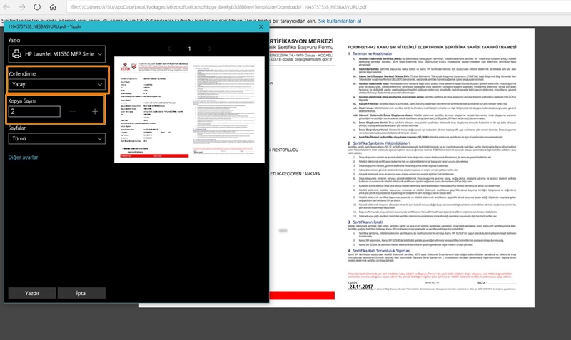 Şekil 7 - PDF 'e Dönüştürülmüş Başvuru Formu