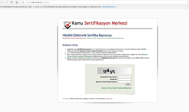 https://basvuru.kamusm.gov.tr/bs/login.go  adresinden Şekil-1'deki Başvuru Portalı giriş ekranına ulaşılır.