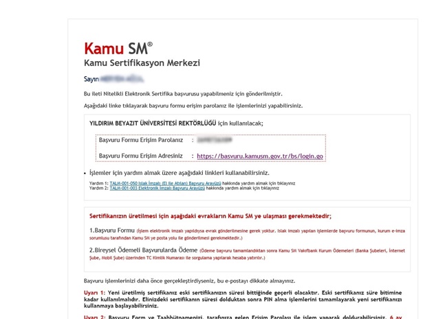 bilgilendirme@kamusm.gov.tr adresinden size ‘Başvuru Formu Erişim Parolanız’ ve ‘Başvuru Formu Erişim Adresiniz’ bilgilerinin olduğu bir mail gelecektir.