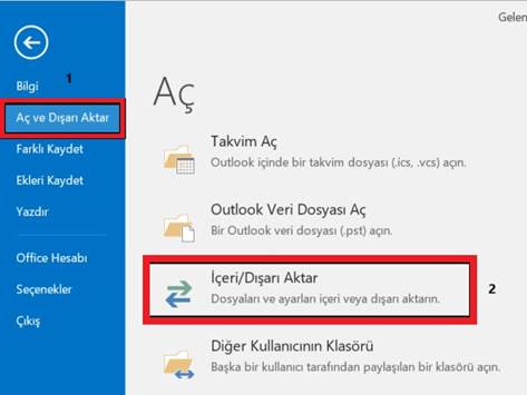 Aç ve Dışarı Aktar > İçeri/Dışarı Aktar öğeleri seçilir.