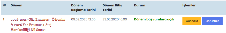 *Önemli Not 2- "Erasmus+ 2026-2027 Güz Dönemi Öğrenci Öğrenim Hareketliliği" ve "Erasmus+ 2026 Yaz Dönemi Öğrenci Staj Hareketliliği" başvuruları ayrıca alınacaktır.