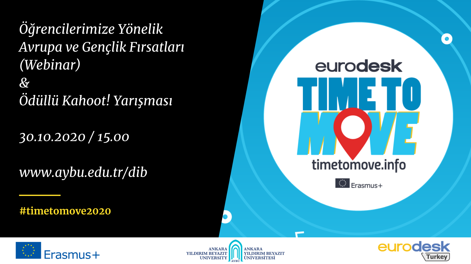Eurodesk "Time to Move" ayı etkinlikleri kapsamında düzenlediğimiz "AYBÜ için Avrupa ve Gençlik Fırsatları" konulu online toplantıda gerçekleştirilen sunum ve webinar kaydına aşağıdaki bağlantılar yardımıyla ulaşabilirsiniz.