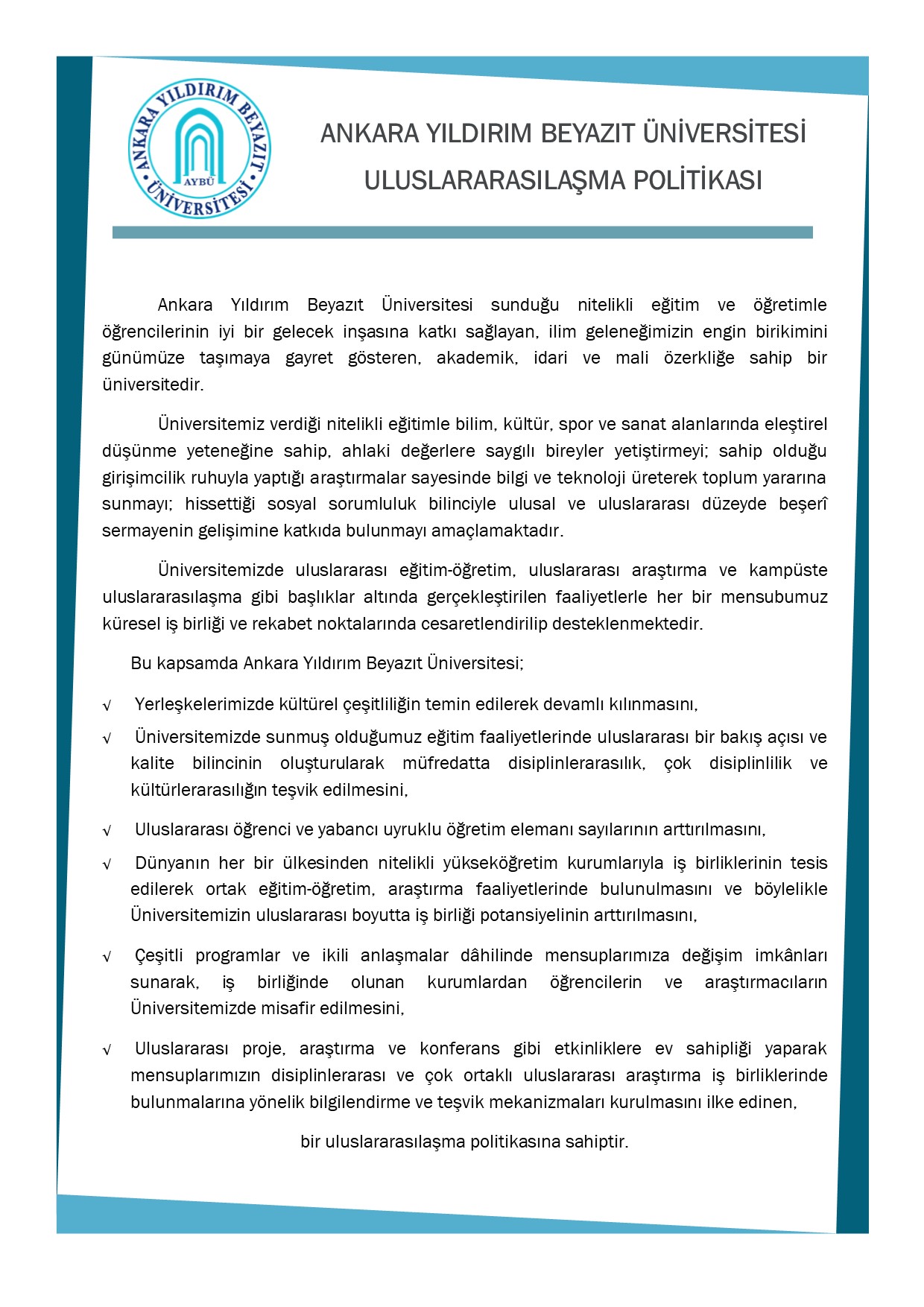 AYBÜ Uluslararasılaşma Politikası
