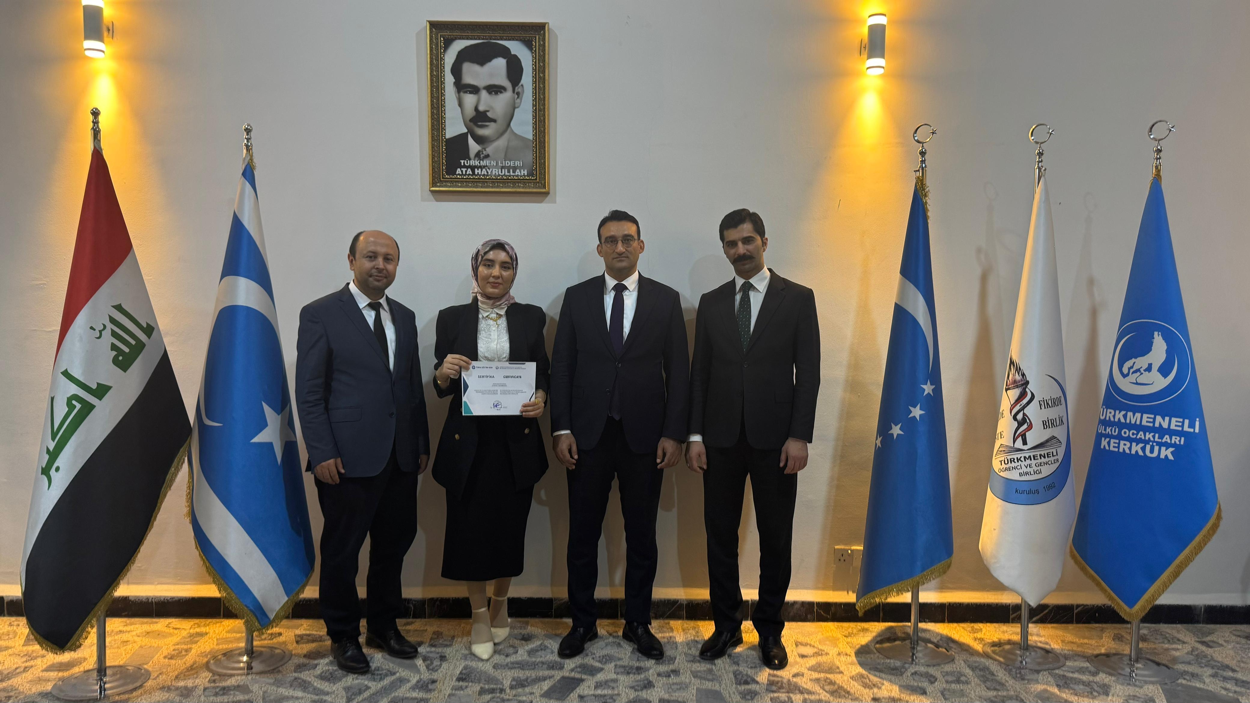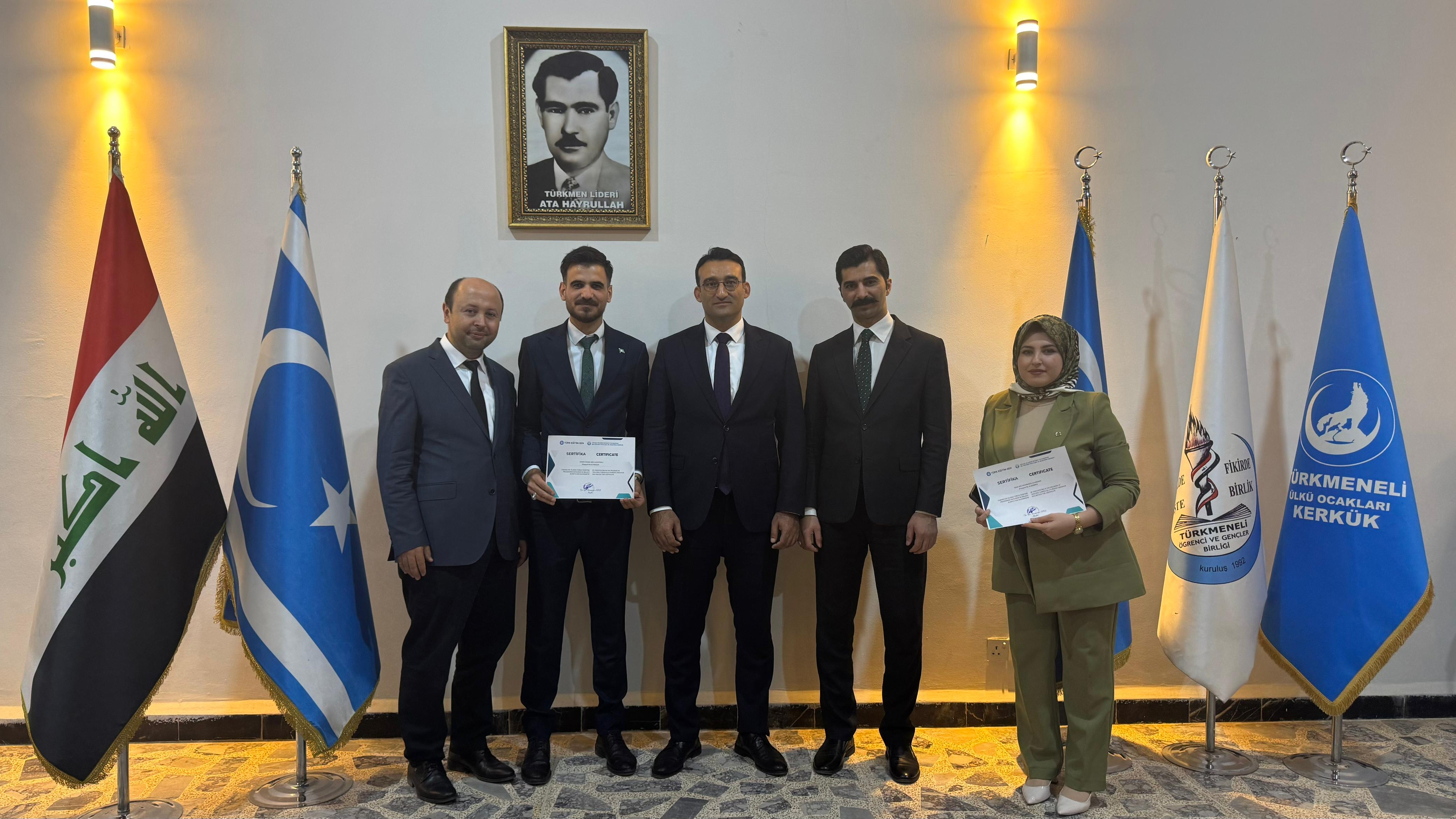 A “Training of Trainers” programme was organized for Turcologists and Turkish Teachers in Iraq, in cooperation with International Eurasian Education Union, Türk Eğitim Sen, Türkmeneli Student and Youth Union and Ankara Yıldırım Beyazıt University (AYBU) DİLMER. Academicians from Turcology departments and Turkish teachers, 50 in total, participated in the education programme, that took place in Kirkuk province. Head of AYBU DİLMER, Lect. Bünyamin OĞUZ, Assoc.Prof.Dr. Latif İLTAR, the assistant principal, Lect.Dr.Kürşat İLGÜN and Lect.Dr.Çağrı Batluralkız provided the training for the participants. During the education programme, a pedagogical and methodological point of view were served for improving and ensuring the quality of Turkish language teaching. Within the scope of the project, the Presidency of Iraqi Turkmen Front, University of Kırkuk, Turkish Maarif Foundation Schools and regional NGOs, active in the fields of education, health and culture, were paid a visit and cooperation possibilities were discussed. In addition, Turkish Exam for Foreigners was held for 100 students from across Iraq within the scope of the Project.