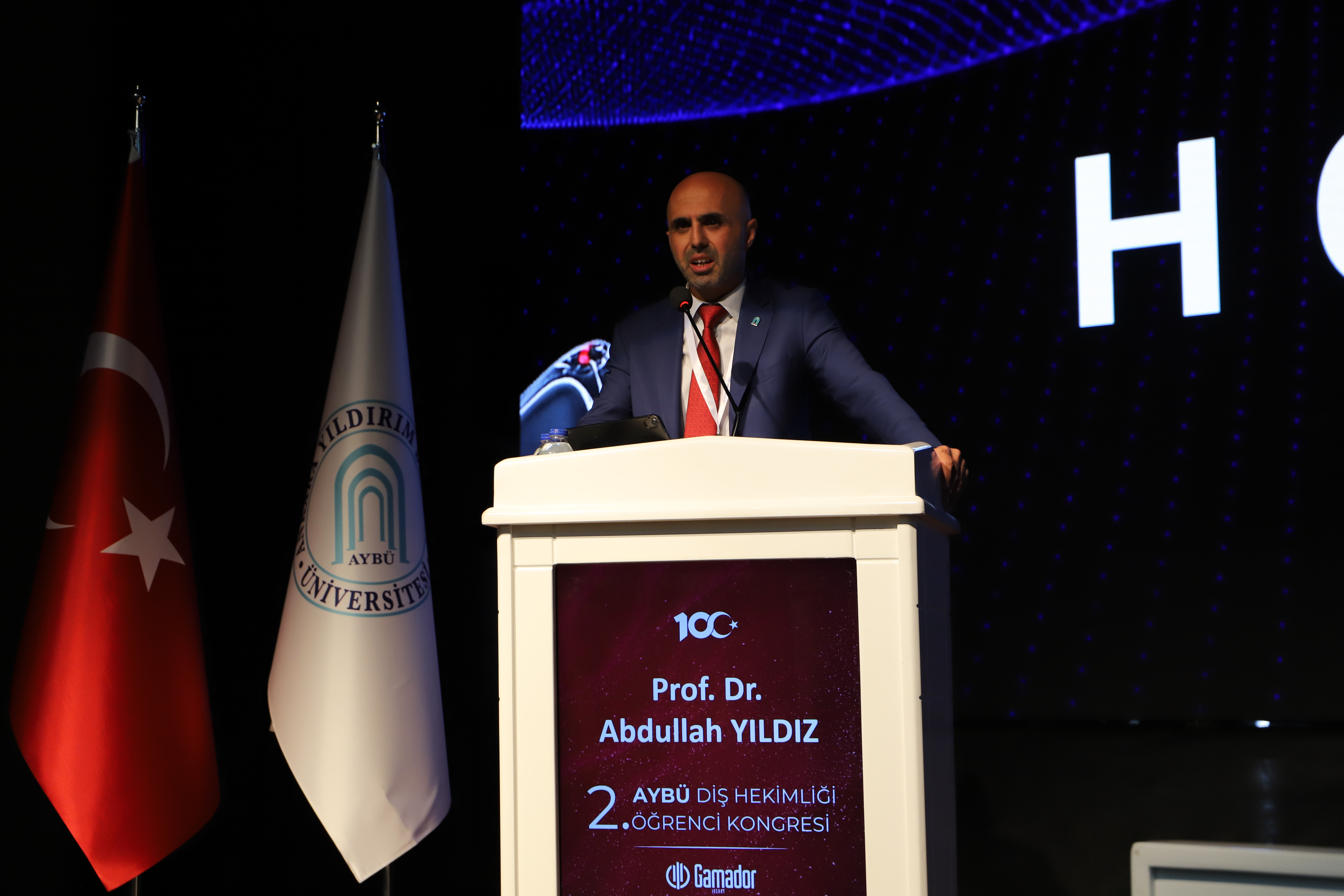 AYBÜ Diş Hekimliği 2. Öğrenci Kongresi Etlik Milli İrade Yerleşkesi konferans salonunda 21- 22 Ekim 2023 tarihlerinde farklı Diş Hekimliği Fakültelerinin öğrencilerinin yoğun katılımıyla başarıyla gerçekleştirildi. Rektör Yrd. Prof. Dr. Abdullah YILDIZ'ın katılımıyla gerçekleştirilen kongre açılışını takiben alanında uzman konuşmacılar güncel diş hekimliği konularında katılımcıları bilgilendirdiler. Cumhuriyetin 100. Yılında gerçekleştirilen kongrede katılımcılar kongreden duydukları memnuniyetlerini dile getirdiler.