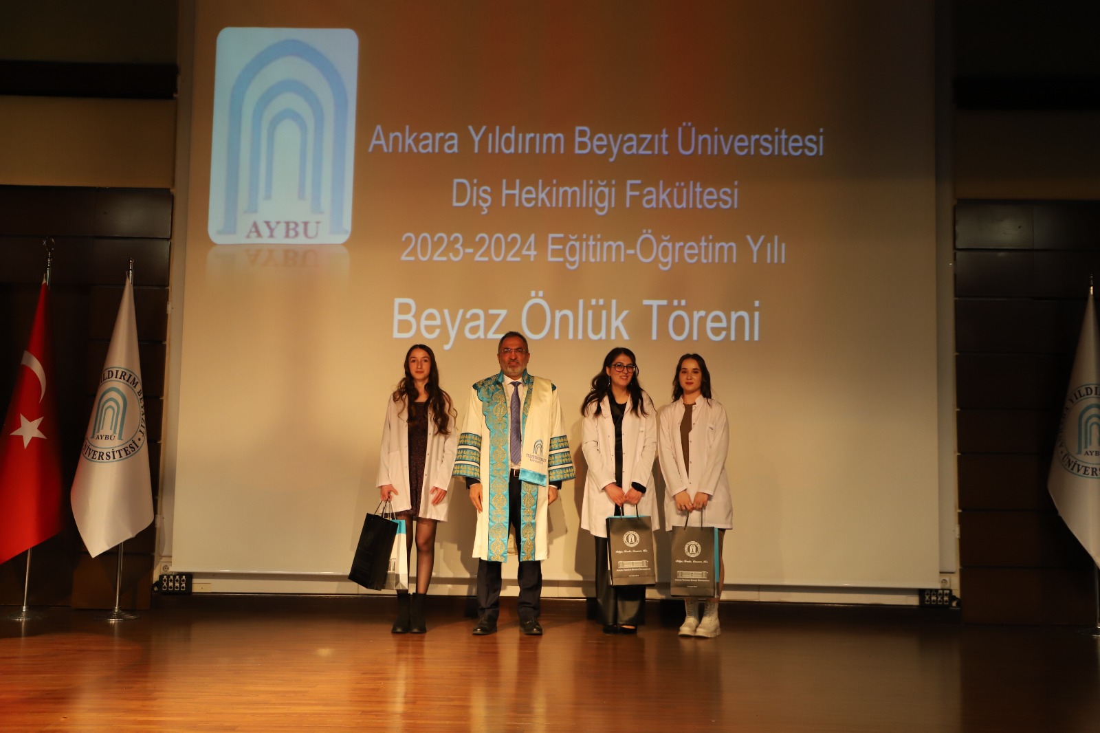 Her sene 22 Kasım da kutlanan Diş Hekimleri Günü sebebiyle Fakültemizde Beyaz Önlük Töreni Rektör Prof.Dr. Ali Cengiz KÖSEOĞLU, Rektör Yrd.' ları Prof.Dr. Akın AKTAŞ ve Prof.Dr. Mustafa ORÇAN' ın teşrifleriyle gerçekleştirildi.