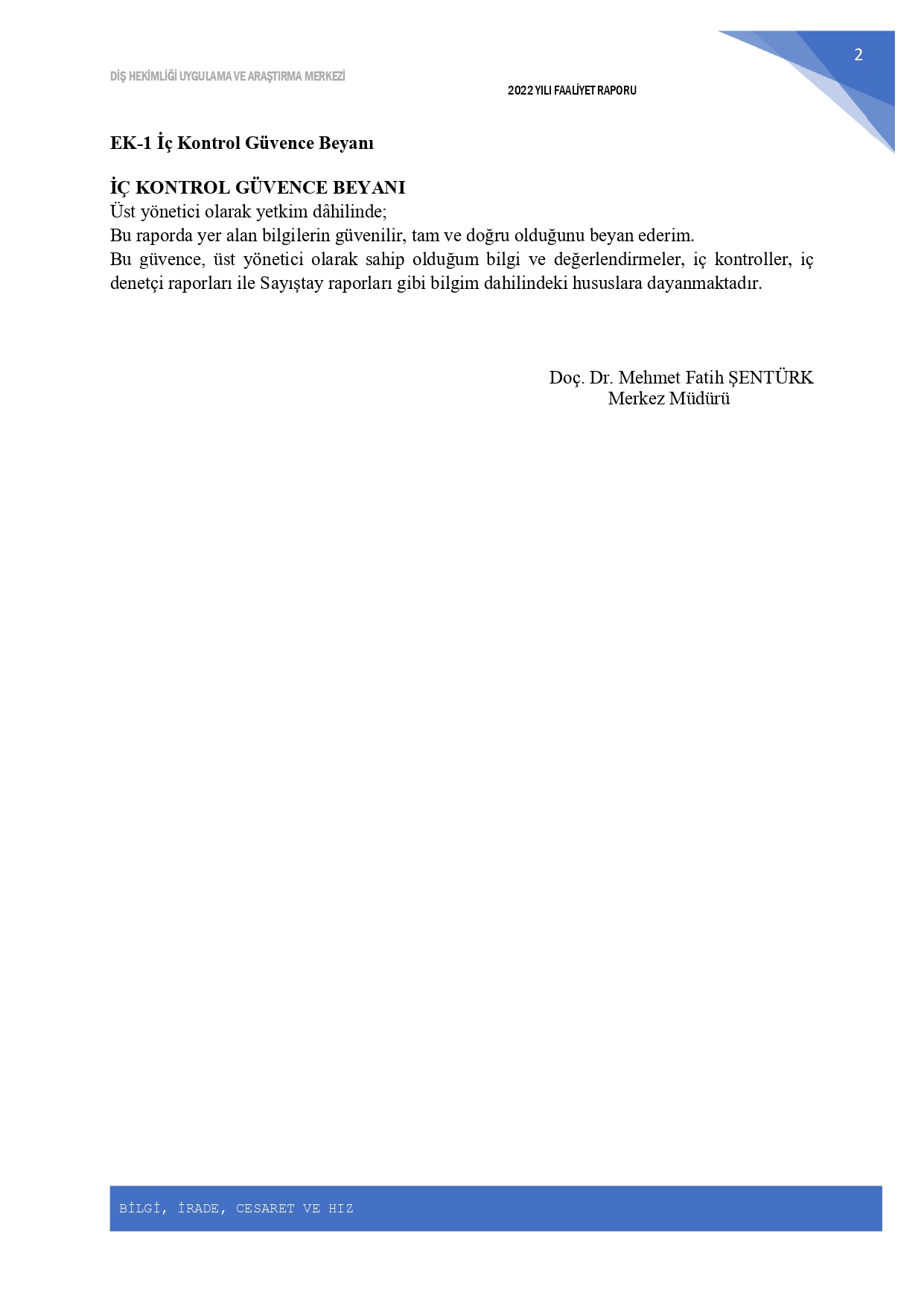 2022 Yılı Birim Faaliyet Raporu