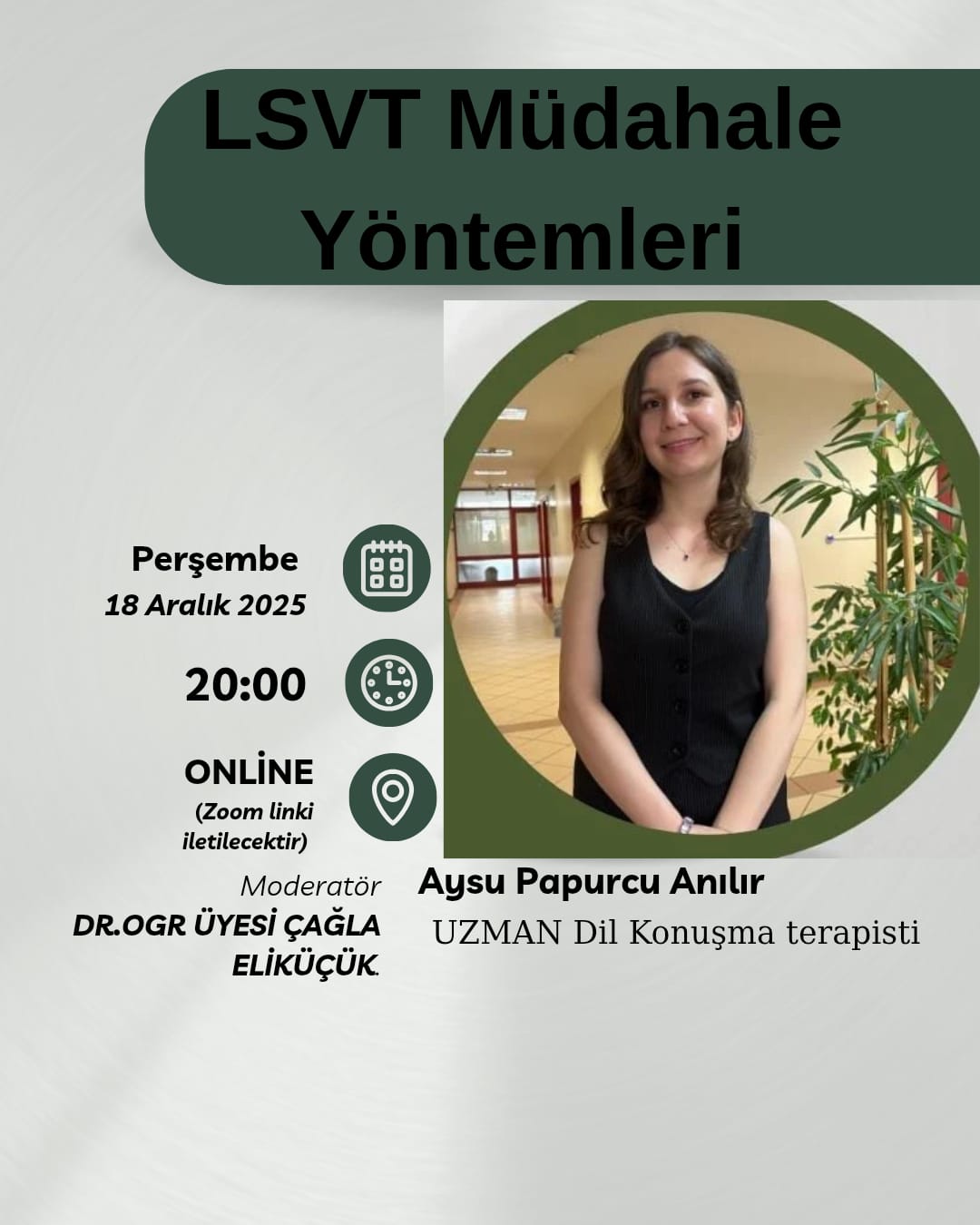 Uzman DKT Aysu PAPURCU ANILIR LSTV Müdahale Yöntemlerini Anlatacaktır.