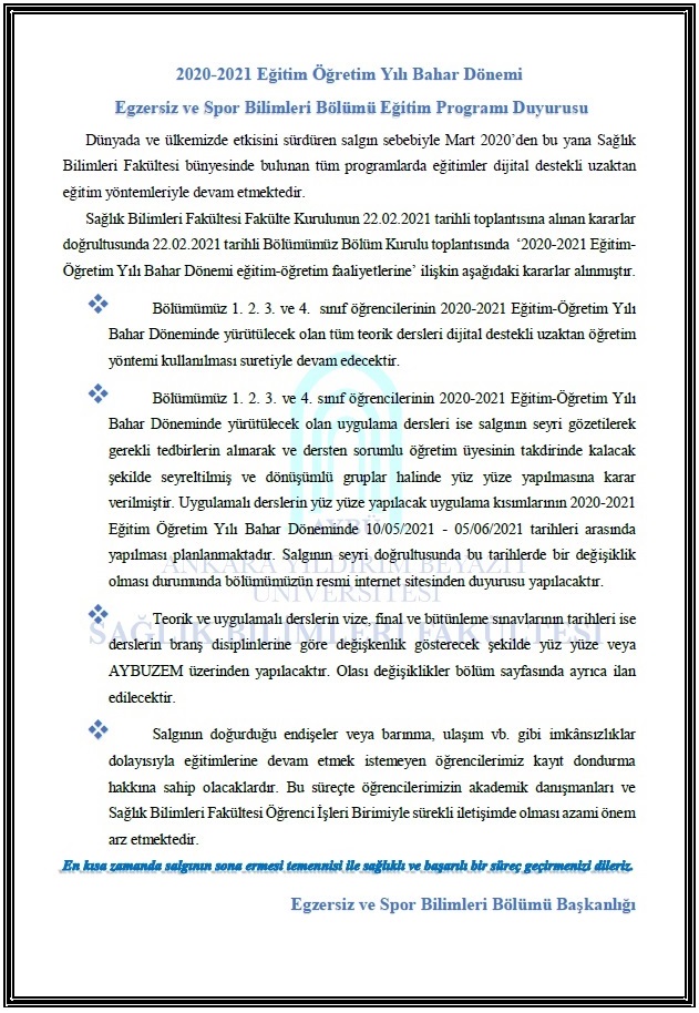 2020-2021 Eğitim-Öğretim Yılı, Bahar Dönemi Eğitim-Öğretim Faaliyetleri Hakkında