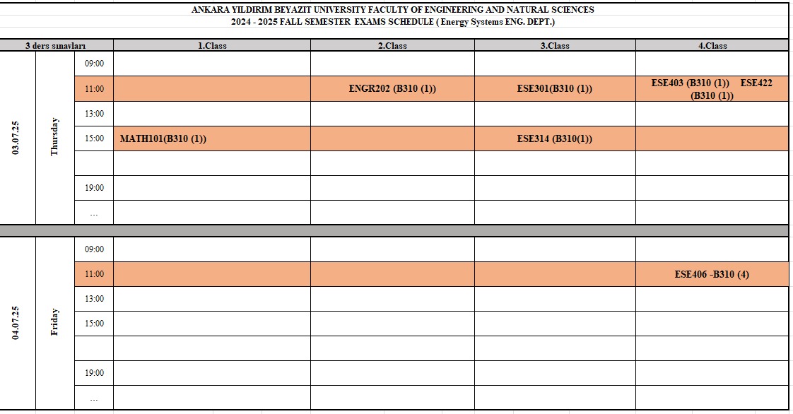 The Three-Course Examination Schedule for the Spring Semester of the 2024–2025 Academic Year is presented below. Students who are eligible to take the examinations are required to attend at the specified date, time, and class as indicated in the schedule.