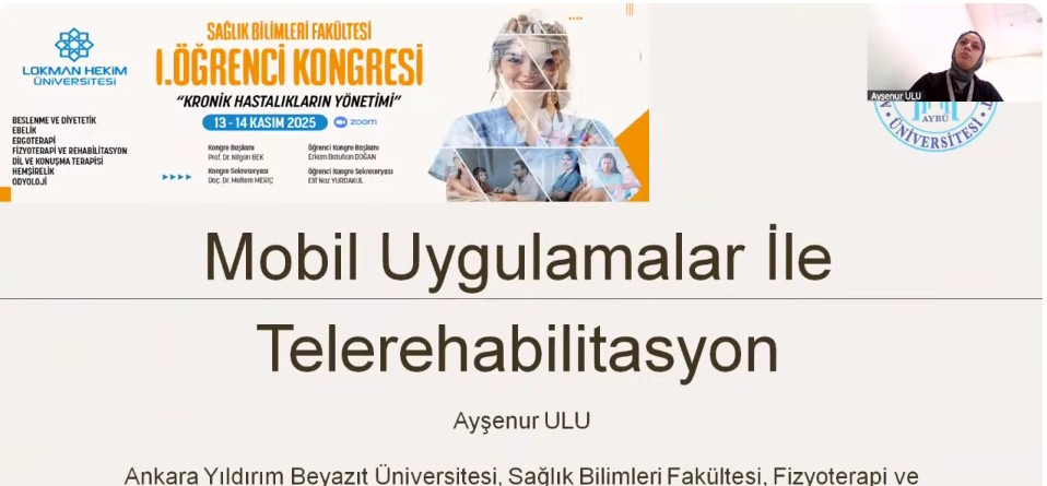 Asst. Prof. Yasemin ATEŞ SARI, and our fourth-year student, Ayşenur ULU, contributed to the 1st Student Congress of the Faculty of Health Sciences on 13-14 November with their presentations titled ‘Augmented Reality-Based Telerehabilitation and Telerehabilitation with Mobile Applications’. We congratulate our lecturer and student and wish them continued success.