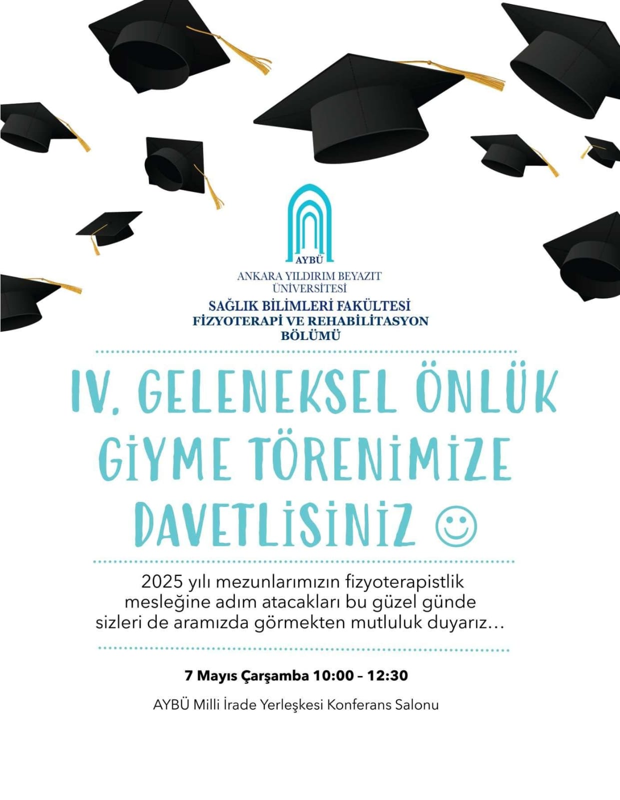 IV. Geleneksel Önlük Giyme Töreni 7 Mayıs 2025 Çarşamba günü 10:00-12:30 saatleri arasında AYBÜ Milli İrade Yerleşkesi Konferans Salonunda gerçekleştirilecektir.