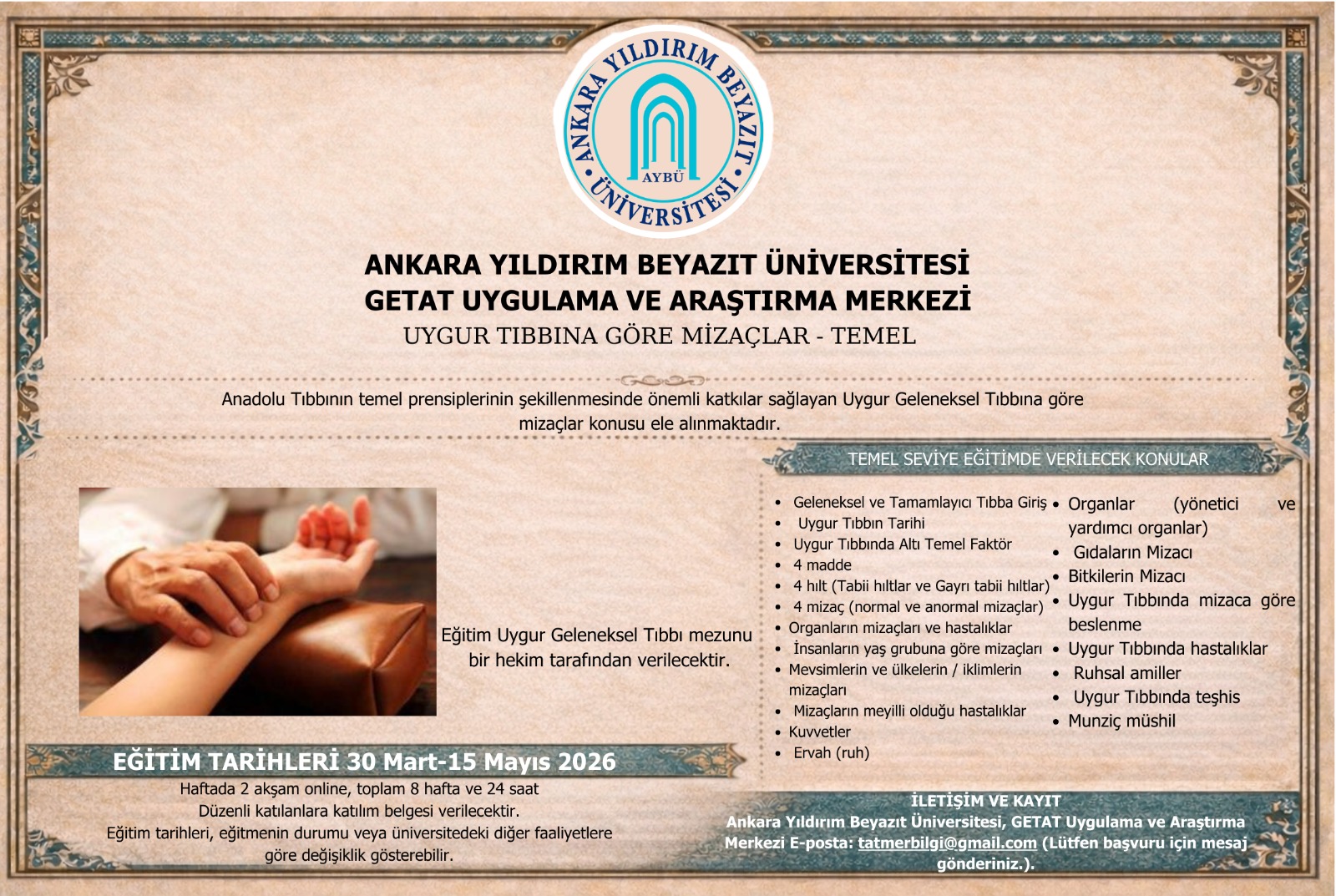 UYGUR TIBBINA GÖRE MİZAÇLAR - TEMEL Eğitimlerimiz Başlıyor ( 30 Mart-15 Mayıs 2026 )