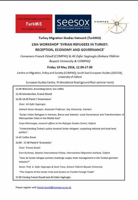 Üniversitemiz Göç Politikaları Uygulama ve Araştırma Merkezi Müdürü İnsan ve Toplum Bilimleri Fakültesi Öğretim Üyesi Yrd. Doç. Dr. Ali Zafer SAĞIROĞLU, Üniversitemiz ve COMPAS-Oxford Üniversitesi ortaklığında gerçekleştirilen "Türkiye'deki Suriyeli Mülteciler: Kabul, Ekonomi ve Yönetim" başlıklı çalıştaya oturum başkanı ve "Suriye Krizi ve Suriyelilerin Türk Dış Ticaretine Etkileri" başlıklı sunumu ile katılımcı olarak katkıda bulunmuştur.