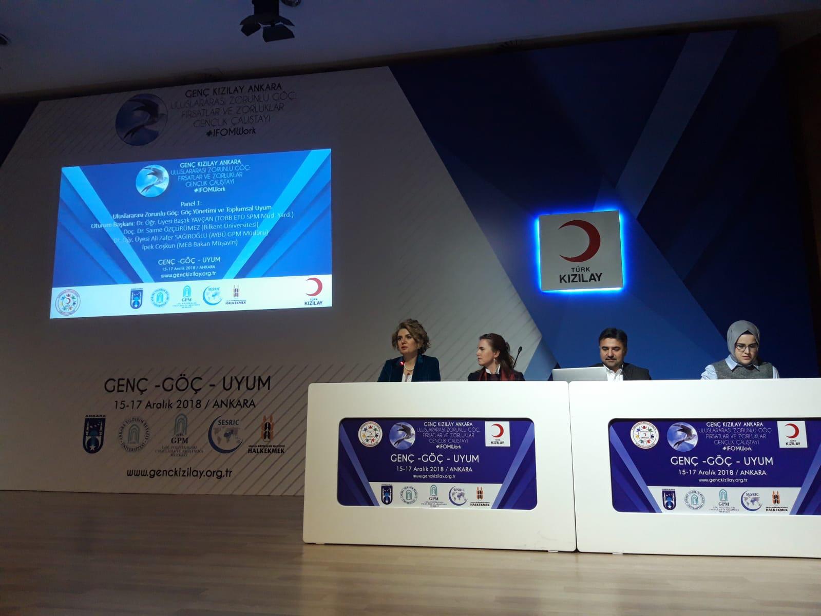 Üniversitemiz, Merkez'imiz (GPM) ve Genç-Türk Kızılayı işbirliğinde “Genç-Göç-Uyum” “Uluslararası Zorunlu Göç: Fırsatlar ve Zorluklar, Gençlik Çalıştayı” başladı. 15-17 Aralık 2018 tarihleri arasında gerçekleşen etkinliğe AYBÜ GPM Müdürü Dr. Ali Zafer Sağıroğlu iştirak etti. Dr. Sağıroğlu, etkinliğin birinci gününde bildiri sunumu ve oturum başkanlığı yaparak, ikinci gün ise seminer vererek ve toplumsal uyum ve göç yönetimi çalıştayına moderatörlük yaparak programa katkı sundu.
