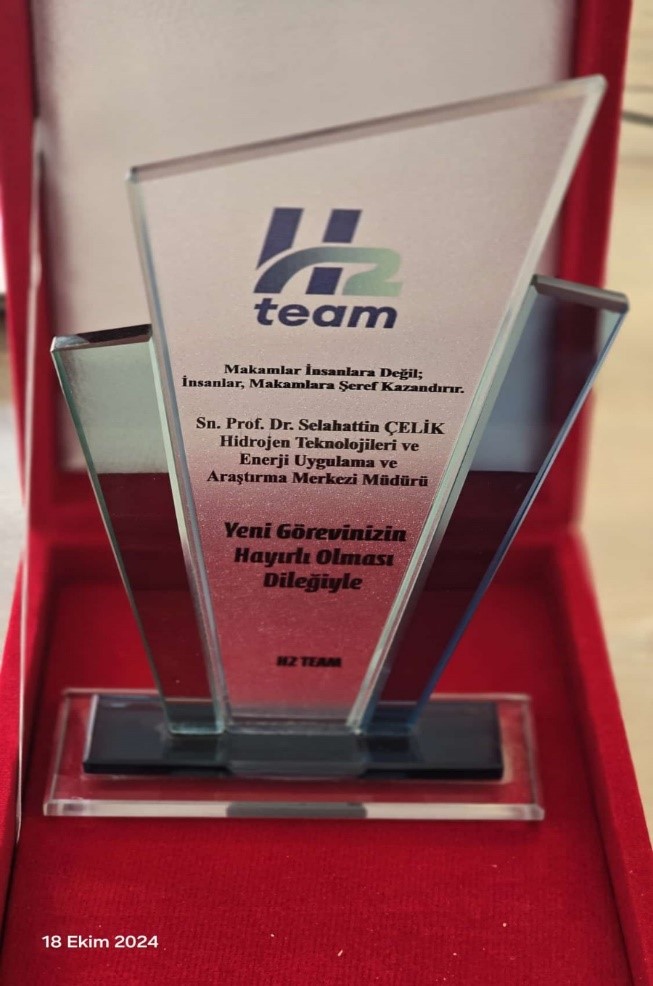 Hidrojen Teknolojileri ve Enerji Uygulama ve Araştırma Merkezinde, merkez müdürü olarak atanan Prof. Dr. Selahattin Çelik’e, değerli hocalarımız tarafından anlamlı bir plaket takdim edildi. Merkez personelinin sürpriz olarak düzenlediği bu etkinlik, hem yeni bir dönemin başlangıcını simgeliyor hem de Prof. Dr. Selahattin Çelik’e olan güvenin bir göstergesi oldu.
