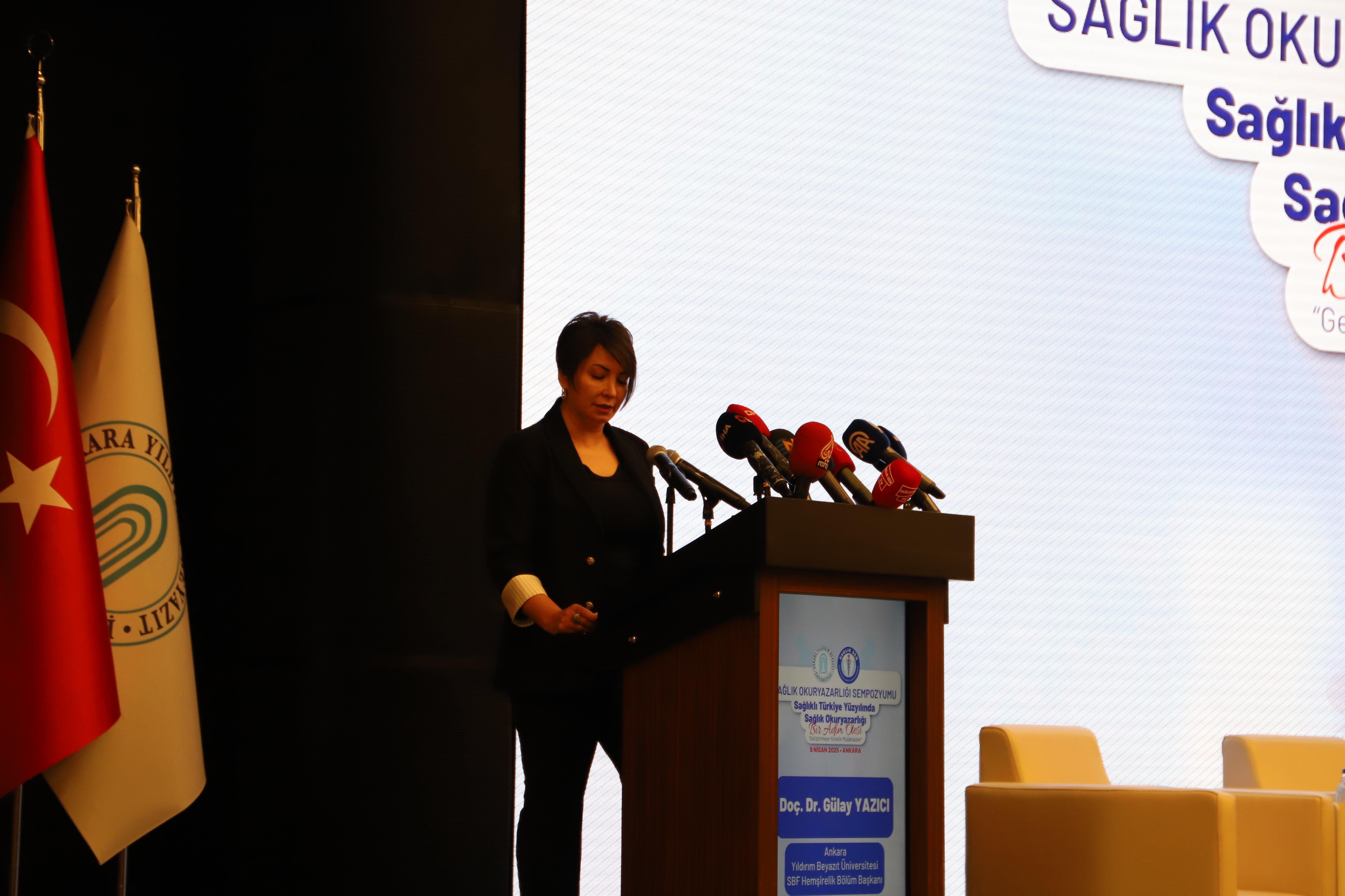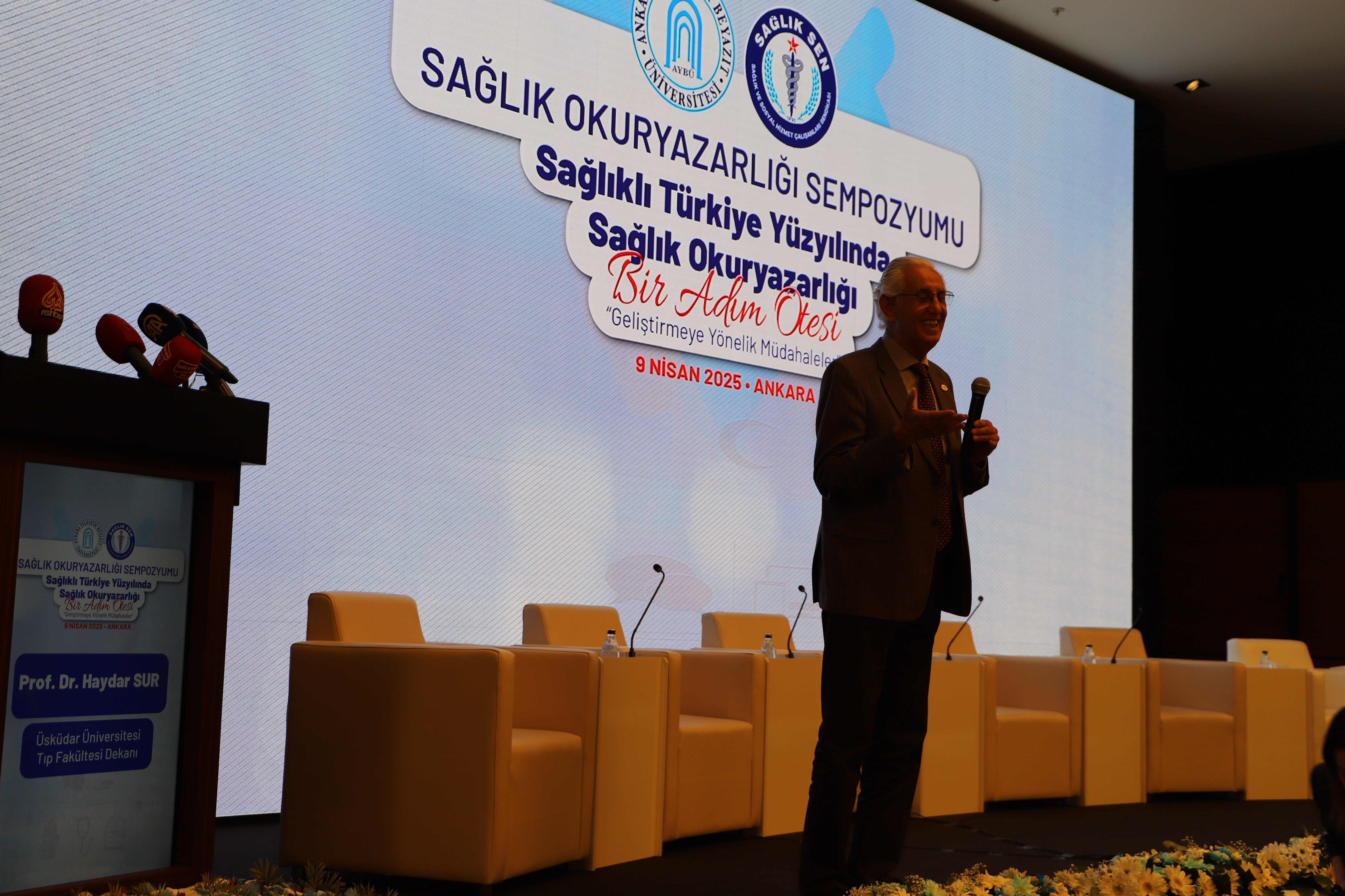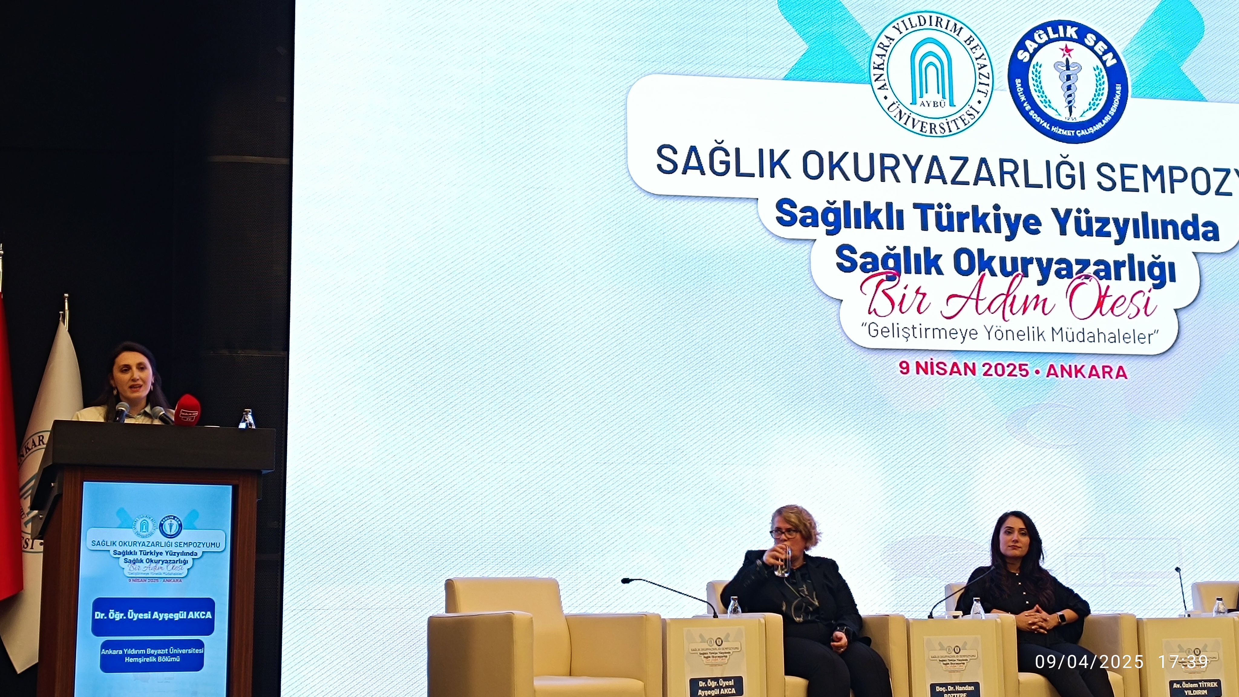 Ankara Yıldırım Beyazıt Üniversitesi ve Sağlık-Sen iş birliğinde "Sağlıklı Türkiye Yüzyılında Sağlık Okuryazarlığı, Bir Adım Ötesi: Geliştirmeye Yönelik Müdahaleler" başlıklı sempozyum düzenlenmiştir. Ankara Yıldırım Beyazıt Üniversitesi Rektörü Prof. Dr. Ali Cengiz KÖSEOĞLU ve Sağlık-Sen Genel Başkanı Mahmut Faruk DOĞAN’ın sempozyum başkanları olduğu programın düzenleme kurulunda üniversitemizden Hemşirelik Bölüm Başkanımız Doç. Dr. Gülay YAZICI, Hemşirelik Bölüm Başkan Yardımcımız Dr. Öğr. Üyesi Erdal CEYLAN, Çocuk Gelişimi Bölümü öğretim üyelerinden Doç. Dr. Burçin AYSU, Dil ve Konuşma Terapisi Bölümü öğretim elemanlarından Arş. Gör. Halil Tayyip UYSAL, Sağlığın Geliştirilmesi Genel Müdürlüğü İletişim Daire Başkanı Mustafa ÖRNEK, Sağlık-Sen Başkan Yardımcısı Mustafa IRGATOĞLU, Hukuk müşaviri Av. Özlem TİTREK YILDIRIM, ve SASAM Sosyal Politika Uzmanı Defne Demet yer almıştır.
