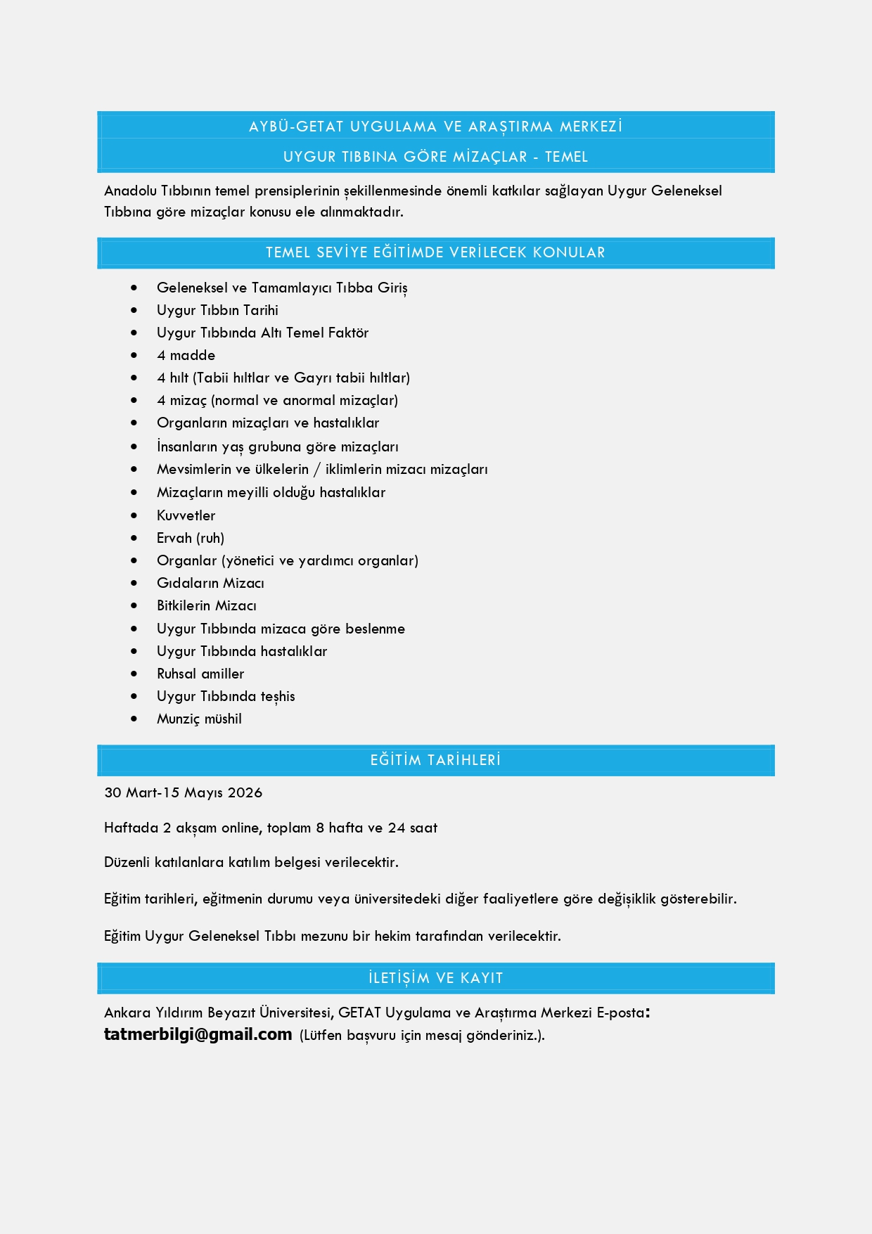 UYGUR TIBBINA GÖRE MİZAÇLAR - TEMEL Eğitimlerimiz Başlıyor ( 30 Mart-15 Mayıs 2026 )