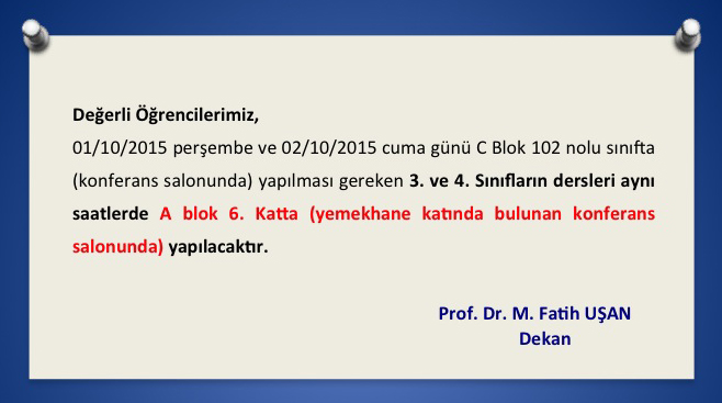 Öğrencilerimizin Dikkatine Derslik Değişimi