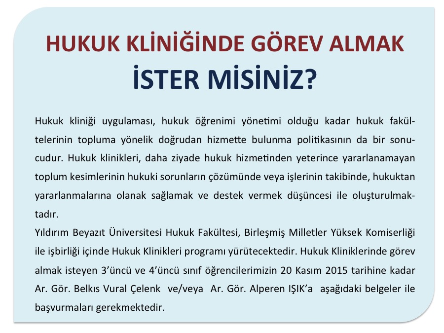 Başvurulacak kişiler : Arş. Gör. Belkıs VURAL ÇELENK (A blok 310 nolu oda)