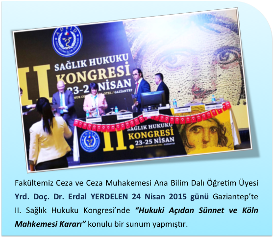 YBÜ Hukuk Fakültesi Ceza ve Ceza Muhakemesi Ana Bilim Dalı Öğretim Üyesi Yrd. Doç. Dr. Erdal YERDELEN II. Sağlık Hukuku Kongresi'nde Sunum Yapmıştır.