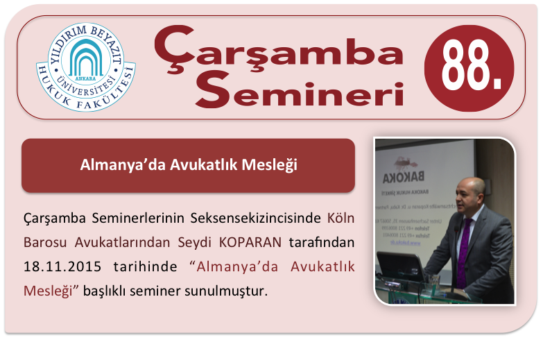 YBÜ Hukuk Fakültesi Çarşamba Semineri 88-Almanya’da Avukatlık Mesleği Adlı Seminer Sunulmuştur.