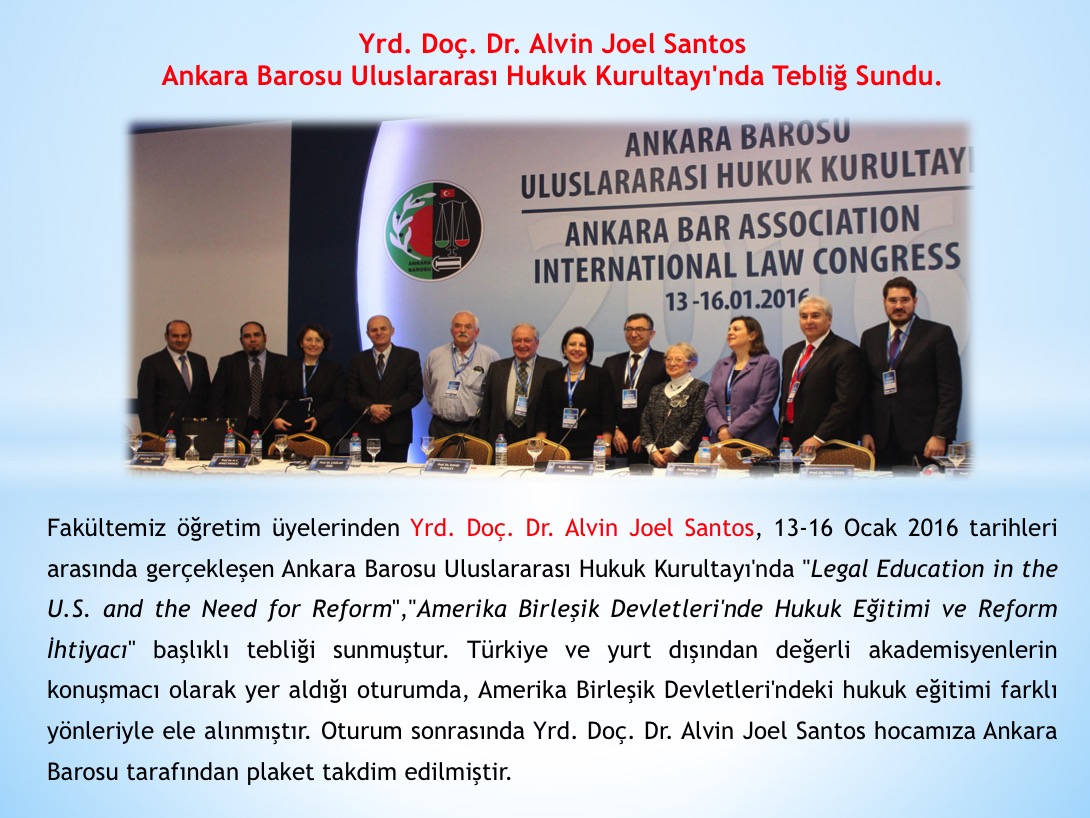 Yrd. Doç. Dr. Alvin Joel Santos Ankara Barosu Uluslararası Hukuk Kurultayı'nda Tebliğ Sundu